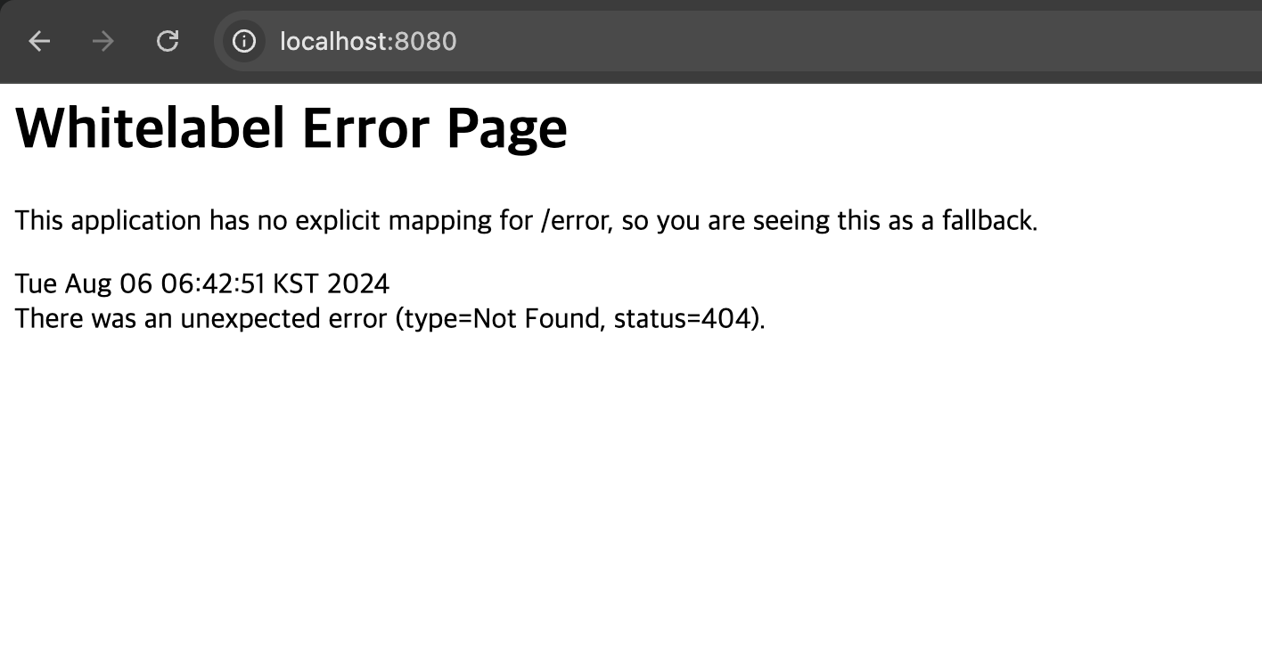 아래의 이미지처럼 localhost:8080으로 접속이 될겁니다