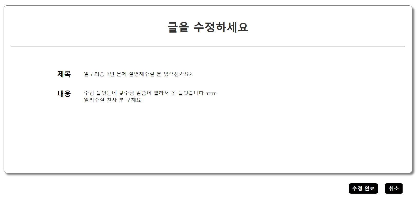 버튼은 수정 취소와 수정 완료 두가지만 있으면 되겠죠?