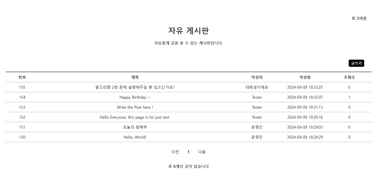 <h4>자유롭게 글을 쓸 수 있는 게시판입니다.</h4>