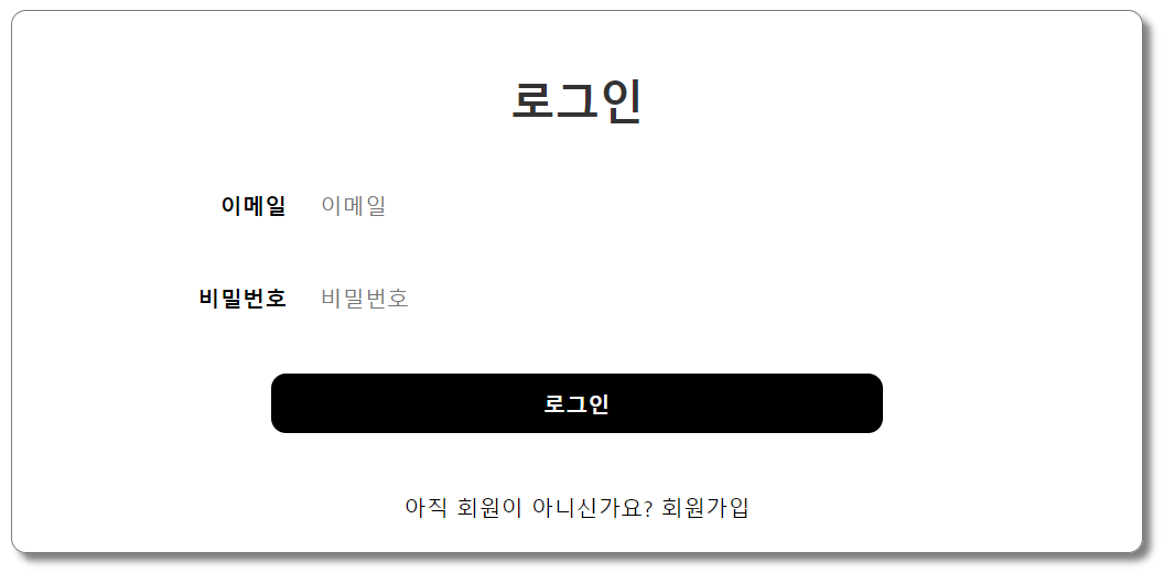 회원가입이 완료가 되었다면 로그인을 해야겠죠? 로그인 페이지는 회원가입 페이지에서 이름을 작성하는 부분만 제외하면 거의 동일합니다.