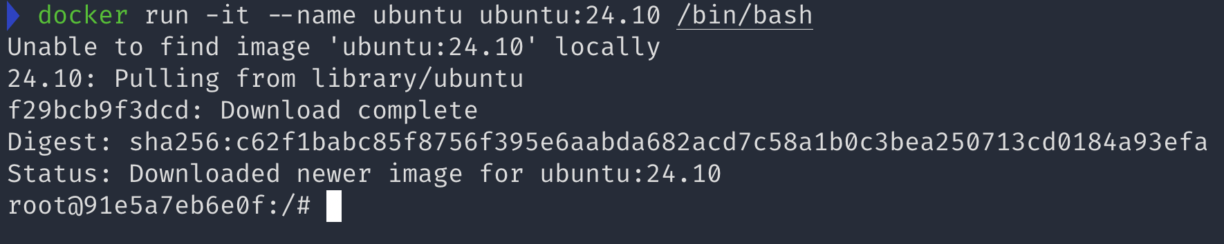 docker run -it --name [컨테이너 이름] [운영체제:버전] [사용할 셸]
