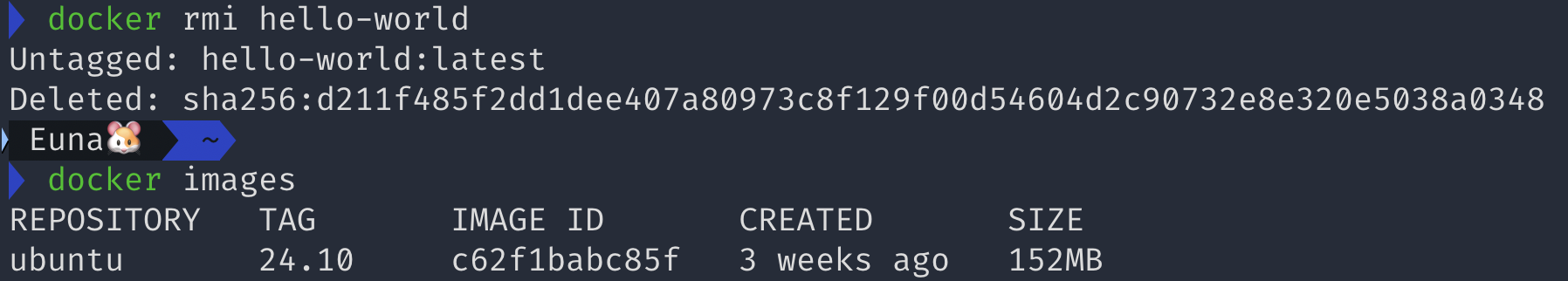 생성한 컨테이너를 삭제하려면 아래의 명령어를 입력하시면 됩니다.